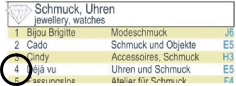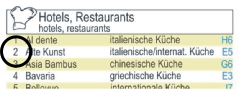 hilfreiche Hinweise wie Telefonzellen, Geldautomaten, Briefkästen, Bushaltestellen, Taxistände, öffentliche Toiletten und Behindertentoiletten, Parkhäuser und -plätze, Behindertenparkplätze