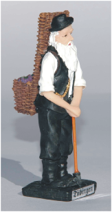 Der dargestellte Weingärtner trägt die typische “Tracht” mit der der Gog in seinen Wengerten ging. Sein Arbeitsgerät war die “Reuthaue” (reuten=roden) und das “Reff”, ein aus Weiden geflochtenes leichtes Rückentragegerät, mit dem man Werkzeug und Vesper in den Weinberg trug.