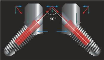 Implantatprothetik „Biomechanische und prothetische Konzepte in der Implantologie“, Georg Thieme Verlag 90 Grad Implantat mit Druckrichtungspfeilen